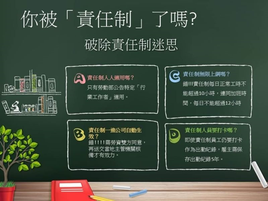 根據預告內容,考量電影製片拍攝現場勞工因拍攝現場時間難掌控,且又屬於一個團隊合作的工作、不見得能夠準時上下班,因此納入責任制,預估人數約4000人。