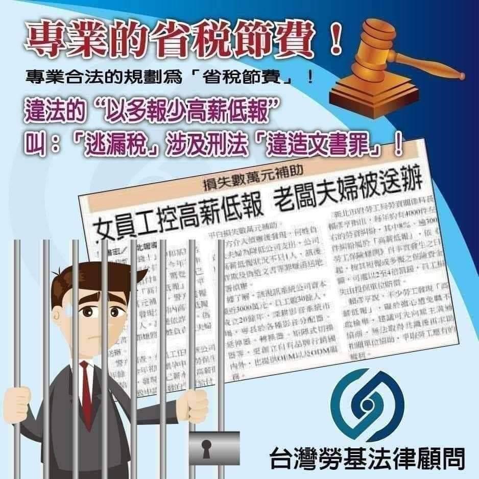 避免老闆(人資、主管、承辦人):高薪低報(以多報少)之刑事責任。