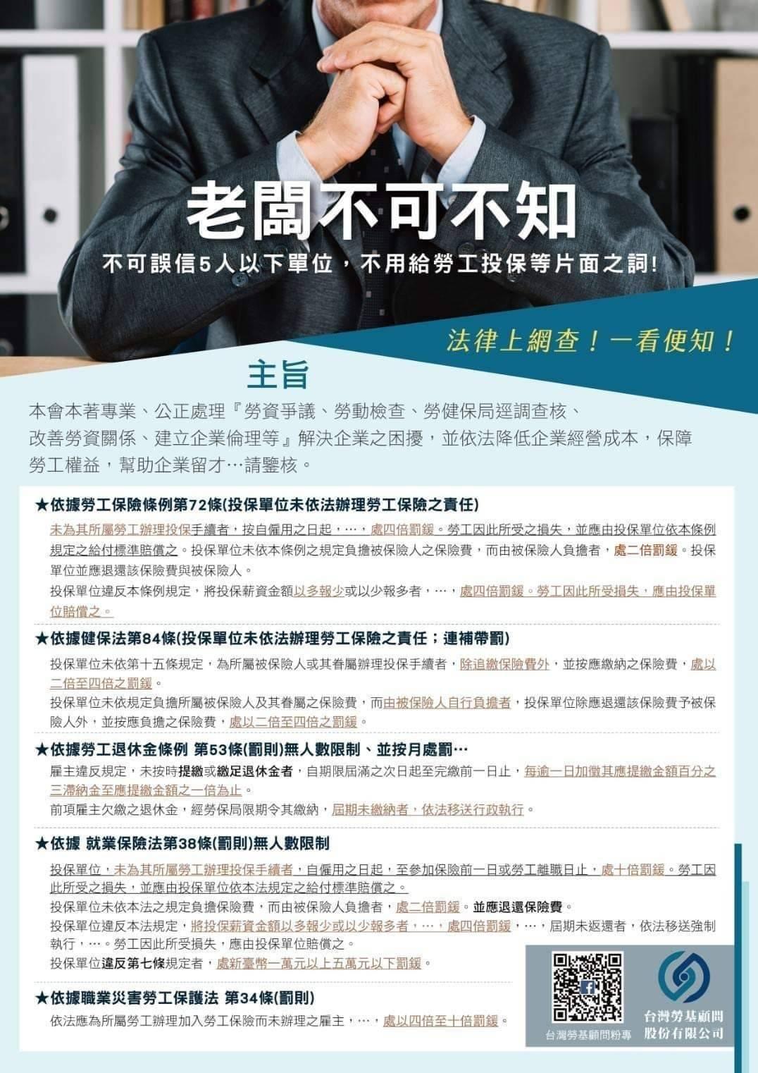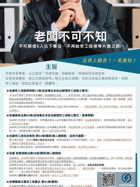 企業依法合法,避免;勞、健保局『重罰』及賠補償責任 !