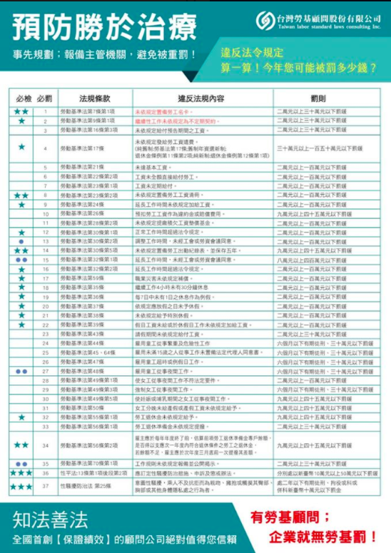 來看自己的企業,是否符合法規,才可以避免勞基重罰。